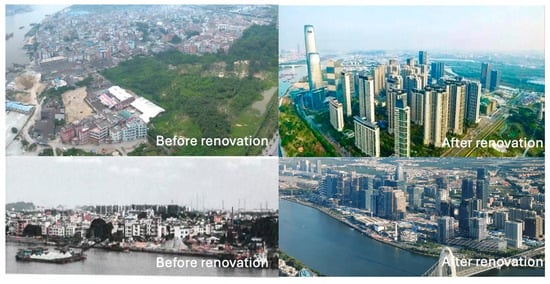 - Huang, G. Research on the Development Model and Mechanism of Innovative Industry Driven by Urban Renewal. Master’s Thesis, Guangdong University of Technology, Guangzhou, China, 2022. [Google Scholar]
