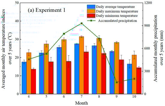 Daily air temperature: In Experiment 1, the daily air temperatures were obtained from the weather station within the experimental station. In Experiment 2, because of the failure of onsite meteorological measurements, the air temperatures were collected from the Wuhan national meteorological station, which is ~20 km from the experimental station. It has been proven that the air temperature data from this national meteorological station can be used as a substitute for that from the experimental station [19].