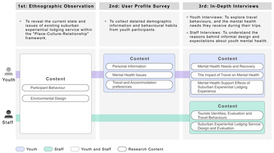 This study employs a qualitative approach to explore youth behaviors and psychological health needs within ST services. To capture the actions and cognitive experiences of different stakeholders, youth, and staff in SELs, the research integrates ethnographic methods supplemented by a user profile survey, participant observation, and in-depth interviews. The advantage of ethnography lies in its ability to elucidate participants’ beliefs within everyday contexts [103], providing a relevant methodology for studying cognition [104]. This approach is increasingly applied in cognitive science to understand cognition in daily life (e.g., Dahlbäck et al. [105]). Integrating these methods helps uncover insights into processes that are difficult to observe directly, thereby offering new perspectives on the nuances of participants’ behaviors and experiences. Dissimilar to quantitative methods, which rely on numerical data, qualitative approaches allow for a deeper exploration of the underlying thoughts and motivations behind individual behaviors [106]. This makes it particularly suitable for investigating the complex MH needs and behavioral patterns of youth and other stakeholders in SELs.