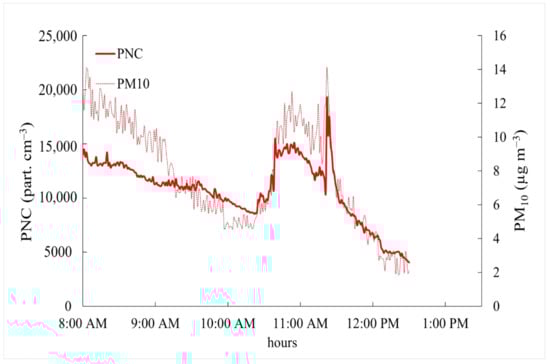 | PNC school time (part. cm−3) | 1.11 × 104 (0.89–1.34 × 104) | 0.41 × 104 (0.34–0.61 × 104) | 1.09 × 104 (0.50–1.46 × 104) |