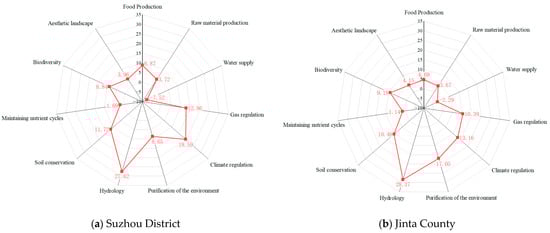 4.1. Analysis of Ecosystem Service Values in Jiuquan City and Its Seven Districts and Counties, China