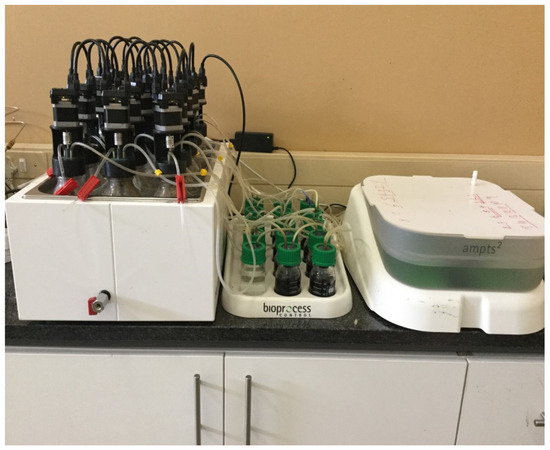 AMPTS II batch experiment set up for anaerobic digestion of NaOH-pretreated Xyris capensis.