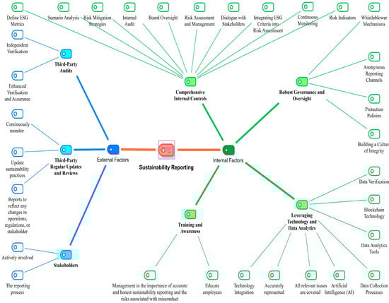 Our findings highlight the critical role of stakeholder engagement, internal controls, and strong governance frameworks in effective fraud risk management within sustainability reporting. This aligns with M.K. Shad et al. (2019) [], who demonstrate that robust sustainability reporting practices can moderate the relationship between enterprise risk management (ERM) and business performance, ultimately enhancing organizational integrity and competitiveness. While our research focuses on mitigating fraud risk, their findings further substantiate that effective sustainability reporting not only promotes transparency and accountability but also reduces information asymmetry among stakeholders. Therefore, these insights underscore the interconnectedness of risk management and sustainability reporting as essential elements in driving organizational success and maintaining ethical practices.