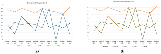 Despite these advancements, traditional auction systems often fall short in addressing these principles, as they are primarily designed for economic efficiency rather than ecological and social equity [8,9]. These systems generally lack the necessary tools to evaluate and optimize economic and environmental performance, leading to inefficiencies and imbalances in resource distribution [10]. Auctions, by their nature, focus on maximizing financial returns, which can sometimes overlook broader social and environmental impacts [11]. For instance, transportation activities linked with auctions contribute significantly to CO2 emissions, presenting a substantial environmental challenge [12,13]. This makes it difficult for actors like regulatory officers, who need to understand how different regulatory fees affect the market, and procurement officers, who need to define a procurement strategy that aligns well with regulatory settings.