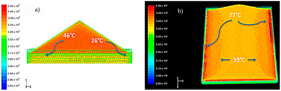 Temperatures inside the solar still: (a) cross-sectional view and (b) top view.