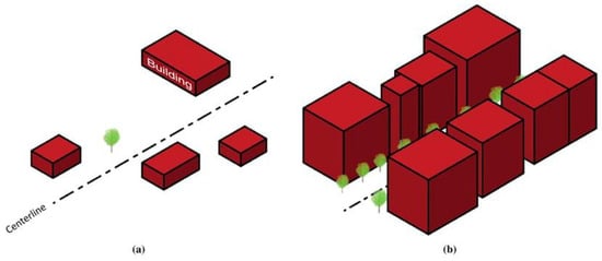 Examples of an open streetscape (a) and an enclosed streetscape (b) (sourced from Aultman-hall and Harvey [46]).