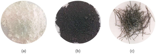Forms of raw materials. ((a) Nano CaCO3; (b) Nano TiC; (c) steel fibers).