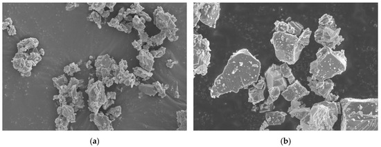 After the compressive strength test, some irregular fragments were taken from the specimens and used as test samples. The fragments were soaked in anhydrous ethanol for 24 h and dried in an oven until it reached a constant weight before microscopic testing. Before the start of the test, each sample was sprayed with gold in a vacuum environment to enhance the conductivity of the sample and improve the image quality. SEM (Hitachi SU8100, Hitachi High-Tech Corporation, Tokyo, Japan) was used to microimage the microstructure of different groups of fragments. EDS was also used to analyze the constituent elements and content of the specimen materials.