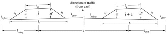 - Loprencipe, G.; Moretti, L.; Pantuso, A.; Banfi, E. Raised Pedestrian Crossings: Analysis of Their Characteristics on a Road Network and Geometric Sizing Proposal. Appl. Sci. 2019, 9, 2844. [Google Scholar] [CrossRef]