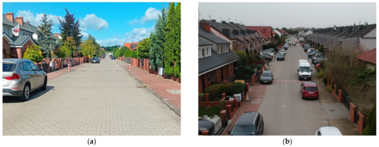 - Street surroundings on the approach to the home zone (houses on both or only one side of the street, presence of as yet empty building plots, and continuation with a paved street or unpaved forest road).