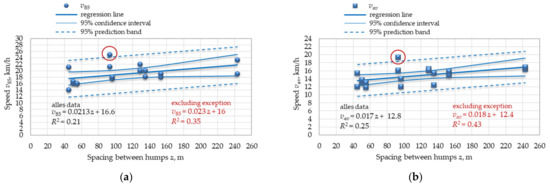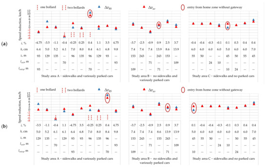 6.1. Analysis of the Influence of Selected Geometric Parameters of the Street and of the Humps Located Thereon on Speed