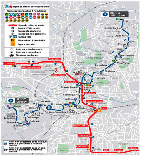- Jaber, S.; Bhouri, N.; Aron, M.; Mahdavi-Moghaddam, S.M.H. Connectivity reliability for assessing public transport networks. In Proceedings of the EWGT23, 25th Euro Working Group on Transportation Networks, University of Cantabria, Santander, Spain, 6–8 September 2023; Volume 3, p. hal-04273985. [Google Scholar]