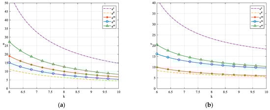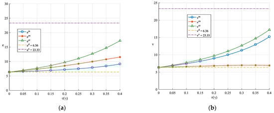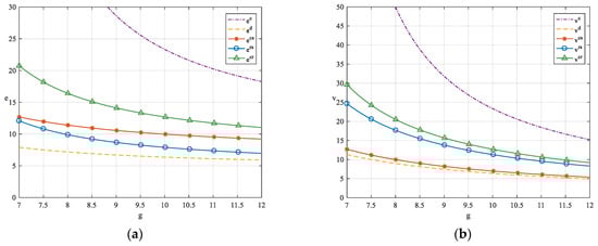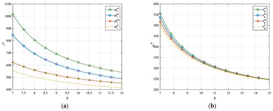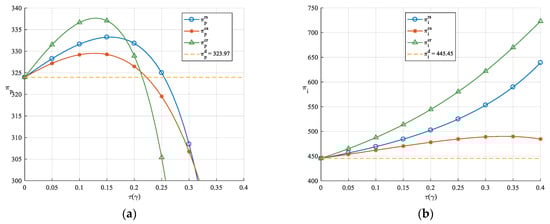 From Figure 11, it can be observed that as the demand sensitivity coefficients increase, the profits of the LSI and LSP also increase, with conditions and consistently holding within the given range. Similarly, from Figure 12, as the demand sensitivity coefficients increase, the profits of the LSI and LSP also rise, with conditions and consistently holding within the given range. Therefore, this validates the robustness of the previous conclusions. Additionally, this conclusion aligns with intuition: when the demand for logistics services is highly sensitive to green innovation levels, the LSI and LSP can efficiently stimulate market demand by enhancing their green innovation levels, thereby increasing revenue.