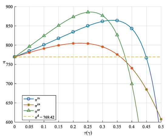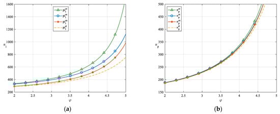 Corollary 3 indicates that when the LSP receives shared revenue from the LSI, it is incentivized to enhance its green delivery innovation level. Distinguishing from Liu [31] et al.’s findings, in this paper’s model, the revenue-sharing contract is able to increase the level of green innovation and profits earned by LSIs. Due to the reduction in revenue, the LSI compensates for the loss by increasing the market price of green logistics services. Contrary to intuition, the LSI also raises its green design innovation level, despite the higher costs associated with it. This paper attributes this to the synergistic effects within the supply chain: the LSI increases its green design innovation level to align with the enhanced green delivery innovation level, thereby improving the overall service quality of the logistics service supply chain. Moreover, the improvement in green design innovation can increase market demand for logistics services. Unlike the cost-sharing contract, the revenue-sharing contract results in the LSI reducing the wholesale price of logistics services. This not only helps the LSP increase its sales volume and market share, but also enhances the LSI’s unit profit.