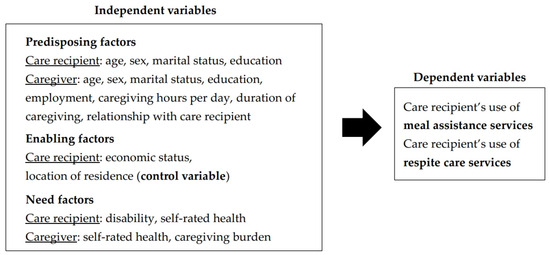 In our analytic framework, the use of HCBC services by disabled older adults is determined by predisposing factors, enabling factors, and need factors of the care recipients and their primary family caregivers. As our study focuses on the individual-level factors affecting the elderly’s use of services on the demand side, the variable “elderly’s location of residence”, which can reflect the quantity and quality of services in the elderly’s residential areas, is an influencing factor on the supply side; thus, it will be included in the study as a control variable.