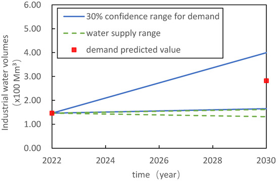 The industrial added value and water usage per ¥10,000 of industrial added value for 2030 are predicted based on historical data, and these are used as the foundational data for the industrial water demand prediction for 2030 [33,34].