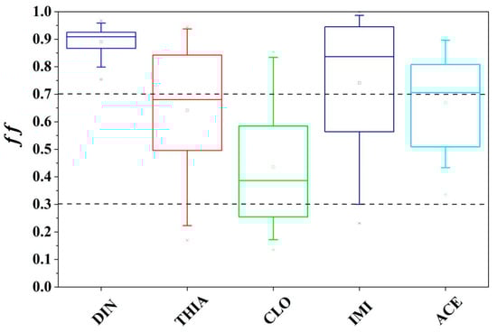 - Chen, Y.; Zang, L.; Shen, G.; Liu, M.; Du, W.; Fei, J.; Yang, L.; Chen, L.; Wang, X.; Liu, W.; et al. Resolution of the ongoing challenge of estimating nonpoint source neonicotinoid pollution in the Yangtze River Basin using a modified mass balance approach. Environ. Sci. Technol. 2019, 53, 2539–2548. [Google Scholar] [CrossRef]