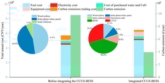 Based on the transformation of traditional industrial energy supply systems, this paper integrated carbon capture, utilization, and storage (CCUS) technology and energy storage units to realize a higher degree of carbon reduction and to transform carbon dioxide into valuable products. The main conclusions of the study are as follows: