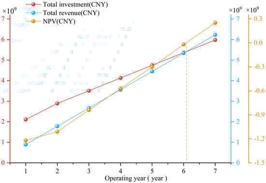 - The net present value (NPV) during the life cycle of a system is positive, and the payback period is 6.09 years, which has good investment prospects. The integration of CCUS technology increases the economic cost of the system by 12.9%, but it reduces carbon emissions by 59.78%. Due to the timeliness and uncertainty of policy incentives, policy incentives are not considered in the investment payback period. Future studies can study their impact from multiple perspectives (government and enterprise perspectives).