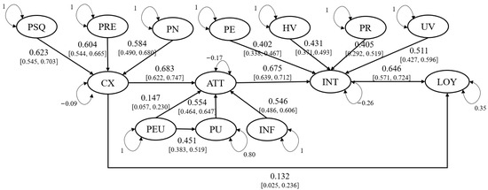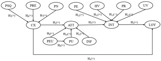 Loyalty (LOY) refers to customers becoming or remaining loyal to a brand [26], including continued buying, recommendation behavior, and brand preferences [57]. Previous research has demonstrated the positive effects of customer experience on loyalty through repeated purchases [58]. Furthermore, the nonlinear nature of customer journeys, such as skipping directly from the pre-purchase phase to the post-purchase phase, suggests that customer experience can directly influence loyalty [50]. Therefore, we put forward the following two hypotheses: