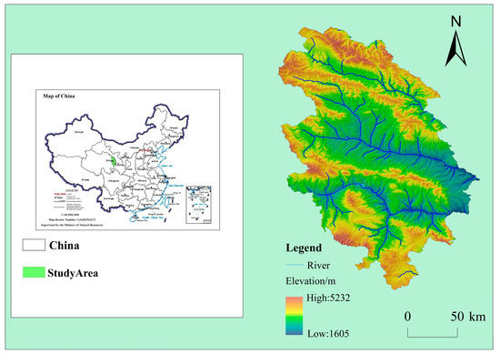 The YHV is situated on the northeastern edge of the Tibetan Plateau, spanning latitudes 35.01° to 37.87° N and longitudes 100.38° to 103.07° E (Figure 1), with elevations ranging from 1605 to 5232 m. The region primarily consists of Xining City, Datong County, Huangzhong District, Huangyuan County, Ledu District, Pingan District, Minhe County, Huzhu County, Hualong County, Xunhua County, Menyuan County, Tongren County, Jianzha County, Guide County, and 14 other districts, spanning an area of 35,789.80 km2. The region is situated in the transition zone between the Tibetan Plateau and the Loess Plateau, as well as the interface between the eastern monsoon region and the northwestern arid zone. The geological conditions in the area are complex, with bedrock primarily composed of Cretaceous siltstone, mudstone, thin sandstone gravel, and other unstable rock layers. Additionally, Cenozoic Tertiary laterite and Quaternary loess are prominently developed [27]. The region is shaped by crustal tectonics and plate movements [28]. Since the Late Cenozoic, tectonic deformation has been intense, with the area characterized by retrograde folded fractures, strike-slip faults, sustained crustal shortening, and steep shearing. It has become the forefront of the Tibetan Plateau’s extension [29,30,31]. The plates surrounding the region include the Longxi Plate, West Qinling Plate, Alashan Plate, Ordos Plate, and other sub-plates [30]. In the current tectonic and geomorphic framework, the southern margin of the Alxa Massif has emerged as the latest addition to the zone. In the current tectonic and geomorphologic framework, the southern edge of the Alxa Massif has emerged as the newest component of the region, intensifying fault activity and creating favorable conditions for the development of geologic disasters [32].