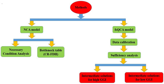 The aim of this study is to investigate the drivers of green growth across 90 countries, focusing on the interplay of factors such as global innovation, institutional quality, renewable energy consumption, state fragility, and globalization using NCA and fsQCA. The application of this integrated approach not only identifies the necessary variables for green growth (using the NCA model) but also uncovers combinatory solutions (using the fsQCA model) and offers robust policy recommendations [104].