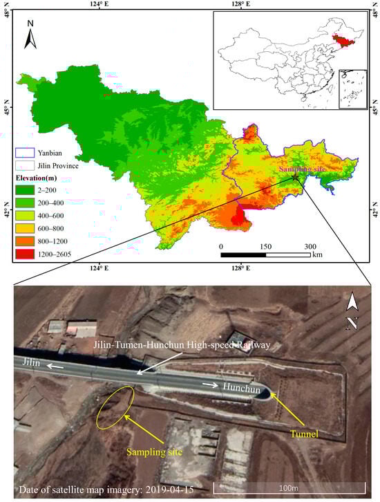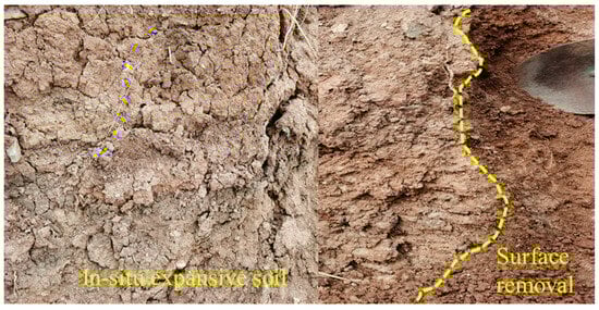 In engineering practice, expansive soil exhibits special deformation properties, namely, swelling and shrinking when in contact with water, repeated expansion and contraction, and a sharp attenuation of immersed bearing capacity, which cause great harm to the sustainable development of engineering construction [1]. These characteristics make it easy for roads to settle unevenly, for the roadbed slope to collapse, and for foundations and building structures to deform and crack [2]. Consequently, “engineering cancer” is another name for this [3]. However, expansive soil is widely distributed in China and abroad, mainly in Yunnan, Guangxi, Guizhou, Hubei, and other provinces in China, as well as in southeast Africa and southeast Asia [4,5,6,7,8,9,10]. In recent years, engineering practice has found that large-scale expansive soil sites frequently occur in seasonal frozen soil areas such as Jilin, Liaoning, and Heilongjiang, and this has an important impact on engineering construction and the prevention of damage caused by freezing [11,12,13,14].