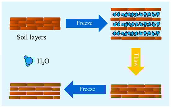 - Zou, W.L.; Ding, L.Q.; Han, Z.; Wang, X.Q. Effects of freeze-thaw cycles on the moisture sensitivity of a compacted clay. Eng. Geol. 2020, 278, 105832. [Google Scholar] [CrossRef]