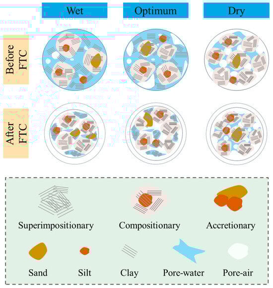 Schematic diagram of the changes in the expansive soil layer structure during the FTCs process (after Zhang et al., 2013; Zhan et al., 2019) [34,35].