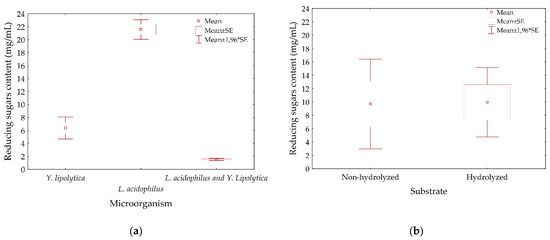 3.4. Content of Reducing Sugars in Fermented Media