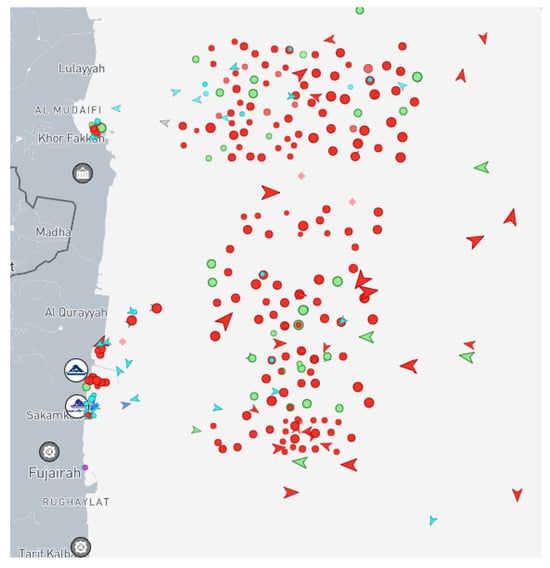 Vessels waiting at anchorage at the port of Fujairah (United Arab Emirates) [20].