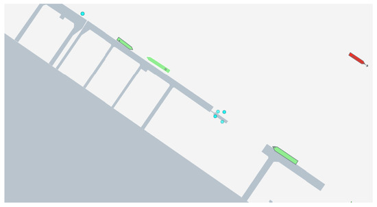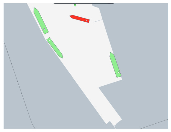 At the same time, when assessing the actual berthing of ships at the quays, with the terminal capacity fully utilized, most cases end up the same, as presented in Figure 4, Figure 5 and Figure 6.