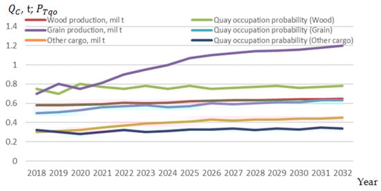 The quantities of specific cargoes to be transshipped and forecast, and the probability of berth vacancy are presented in Figure 12.