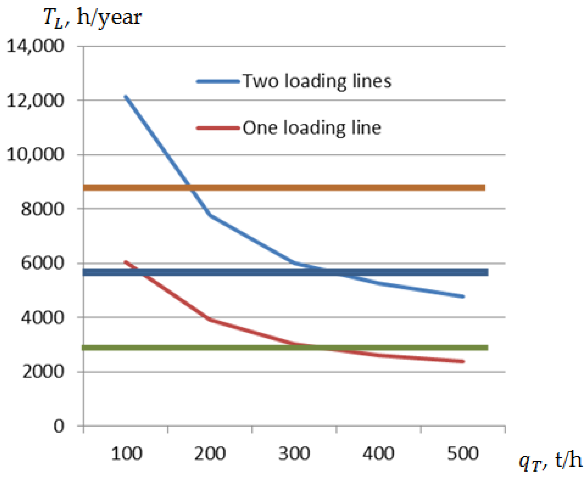 - Using two shifts and loading up to two ships at the berths for the same cargo flow—0.793;