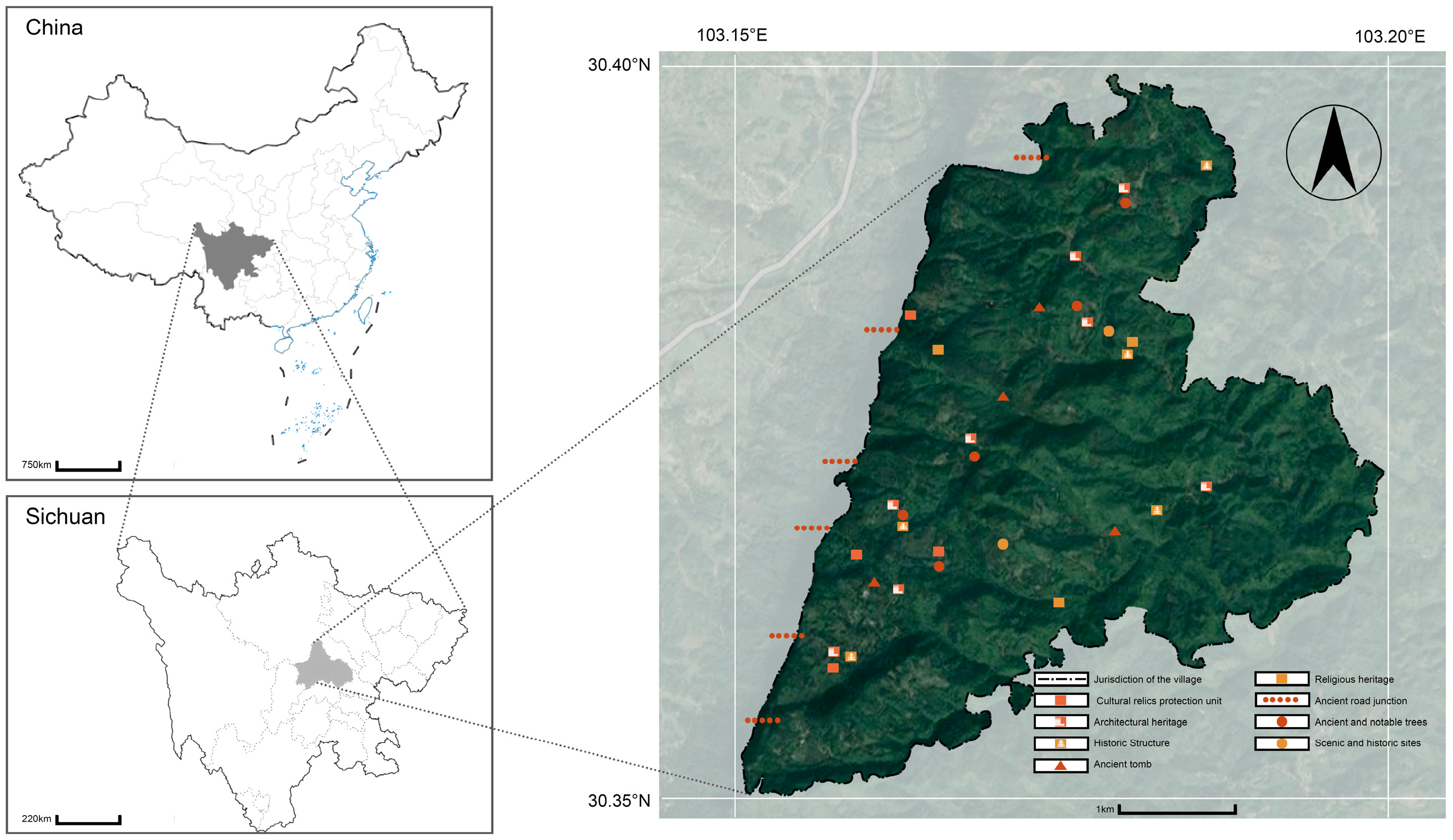 - Qian, X.; Yu, Y.; Liu, R. The spatial relationship characteristics and differentiation causes between traditional villages and intangible cultural heritage in China. Buildings 2025, 15, 2094. [Google Scholar] [CrossRef]