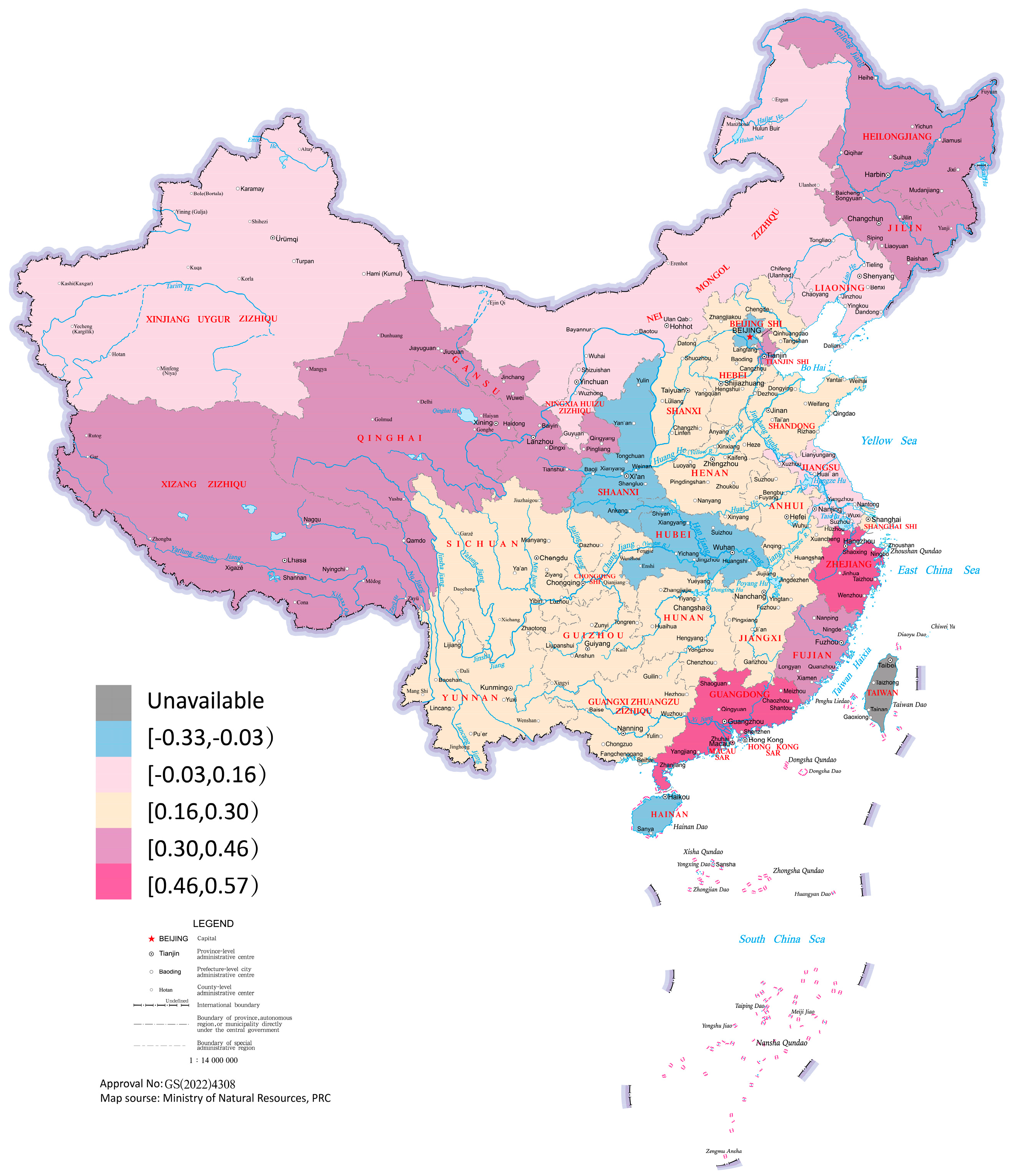 Using 2020 data, this section examines the spatial distribution and structural patterns of the Provincial Development Equilibrium Index (
