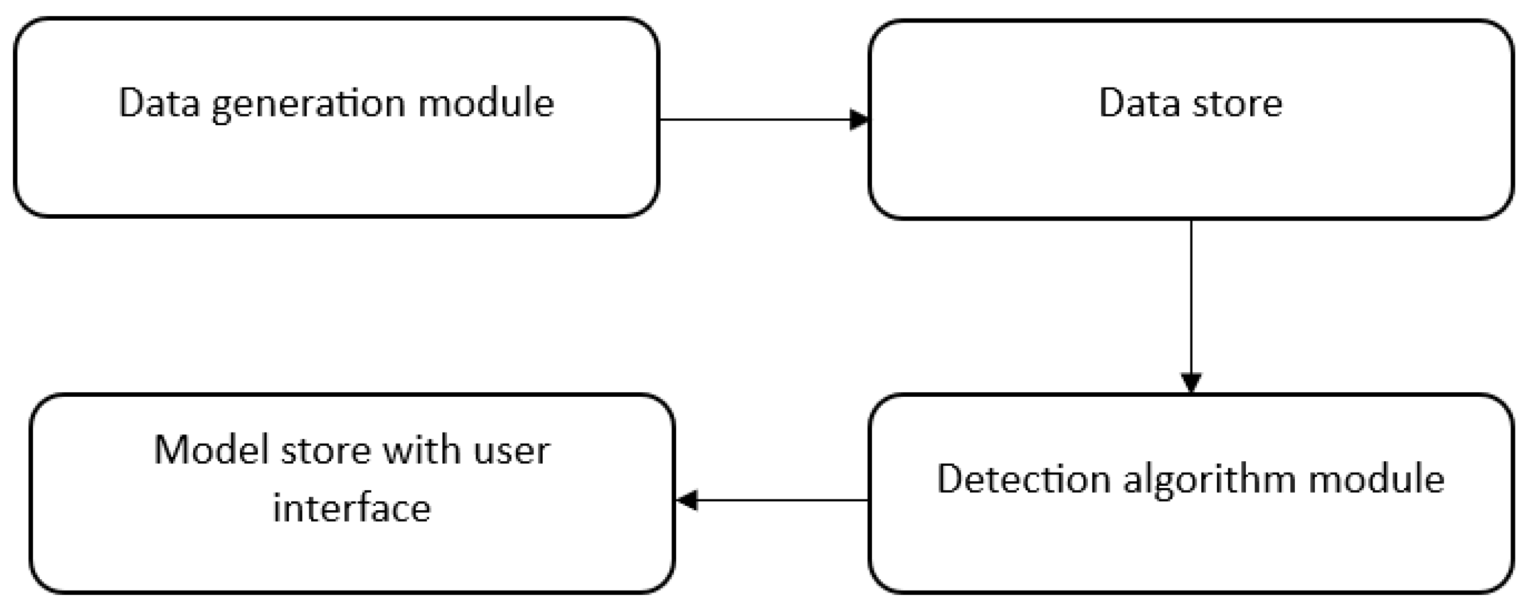 A data store synthetic network data in files *.csv, that are created by the data generation module. These files contain network features and class labels (0 or 1) and are saved in a format that can be easily read by the detection script. This module acts as an intermediary between the generation of data and its processing by the detection module. The module provides persistent storage of synthetic data, which allows the same data to be reused in different experiments and easy data management.