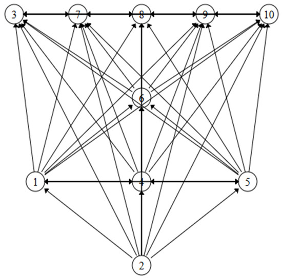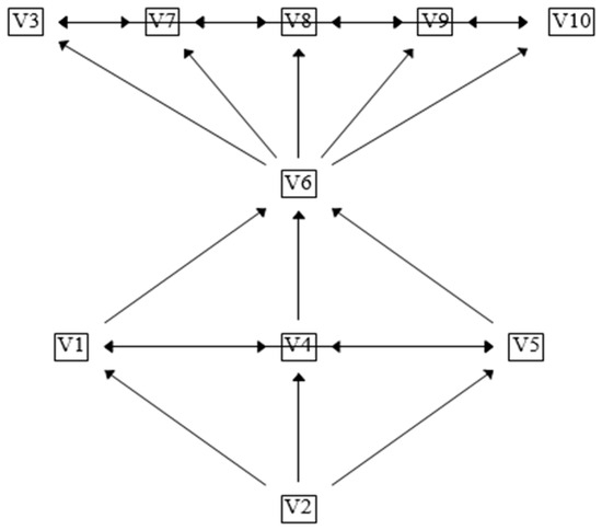The opinions of experts and shareholders were considered to ascertain the nature of the contextual links among the factors. To examine the factors and their contextual relationships, phrases like “influences” or “leads to” were used. This suggested that one factor influenced another and was the starting point for creating a contextual relationship between the listed factors [34]. In this way, we questioned whether there existed a relationship between two factors (i and j) and what the contextual relationship was for each of the factors. The following four symbols [35] were used to denote the direction of relationship between two factors (i and j).
