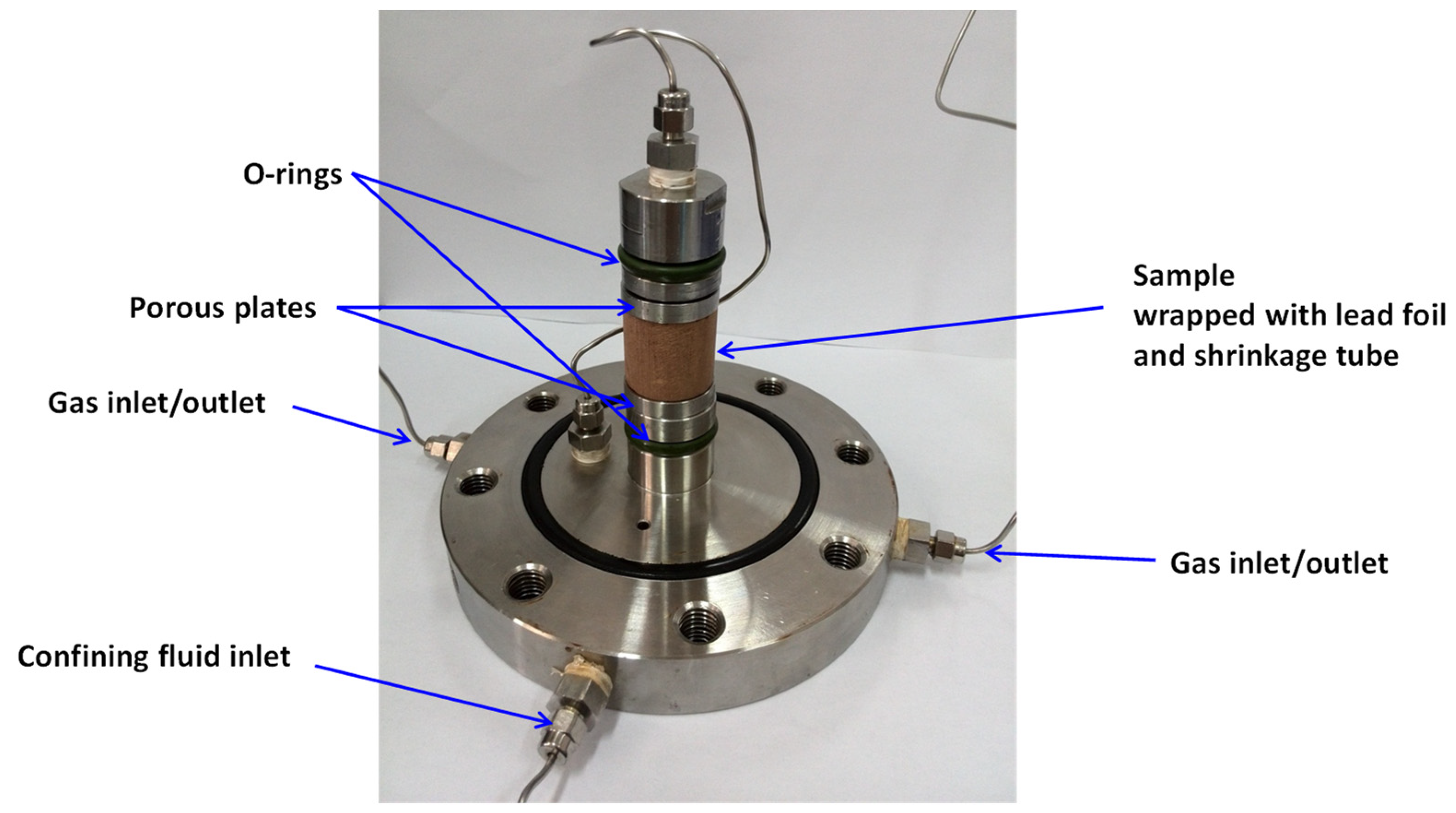 - Mount the prepared coal core sample into the pressure chamber. The internal structure of the pressure chamber is illustrated in Figure 2.