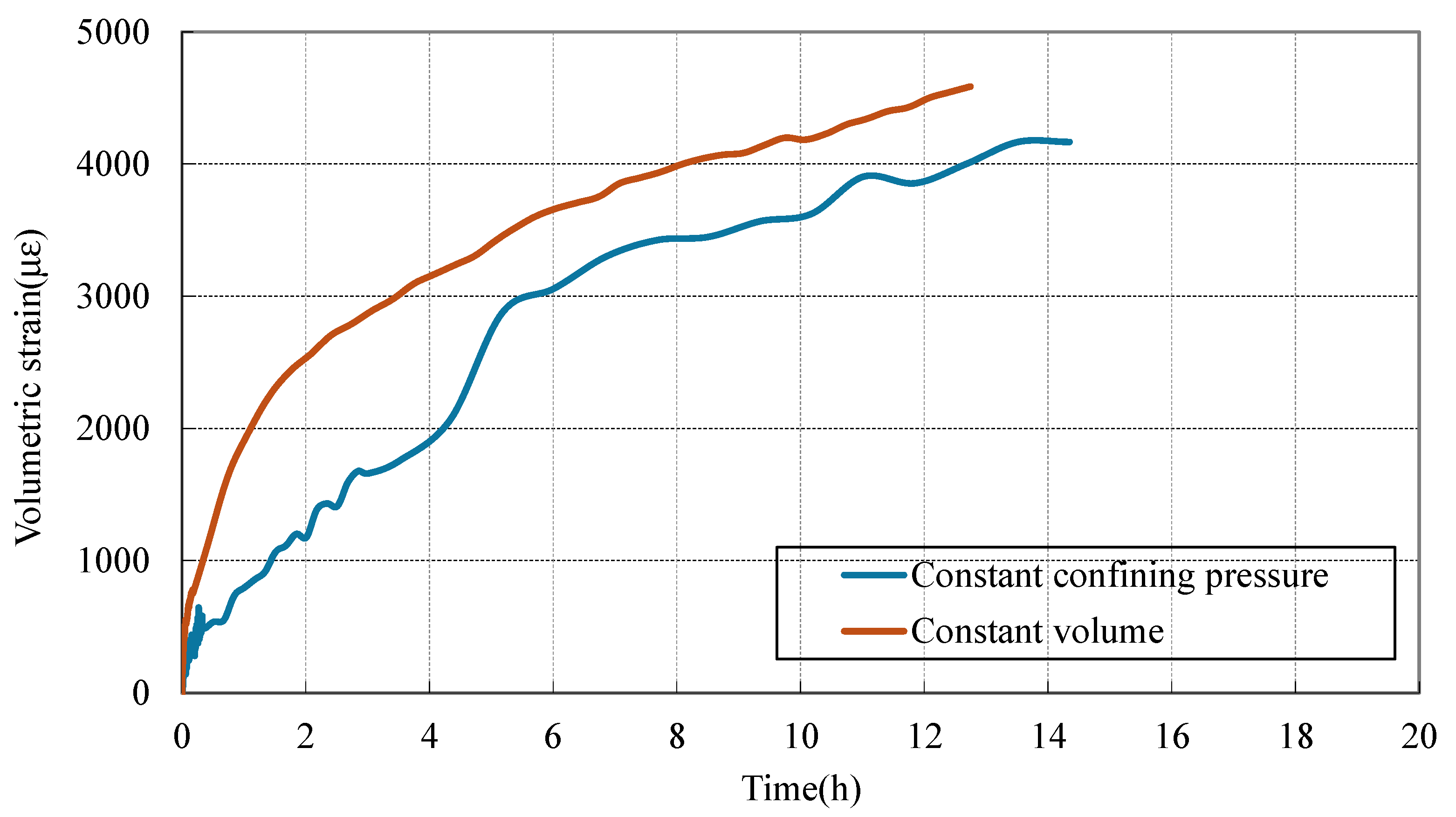 - Sorption-induced swelling is pressure- and constraint-dependent. Driven by increased CO2 adsorption, higher CO2 pressure (2 MPa) results in greater total strain compared to 1 MPa. Under constant volume, initial strain rises sharply due to rapid stress accumulation, while constant confining pressure enables more continuous, progressive swelling—especially at higher pressures, where adsorption-driven expansion dominates over mechanical restraint.