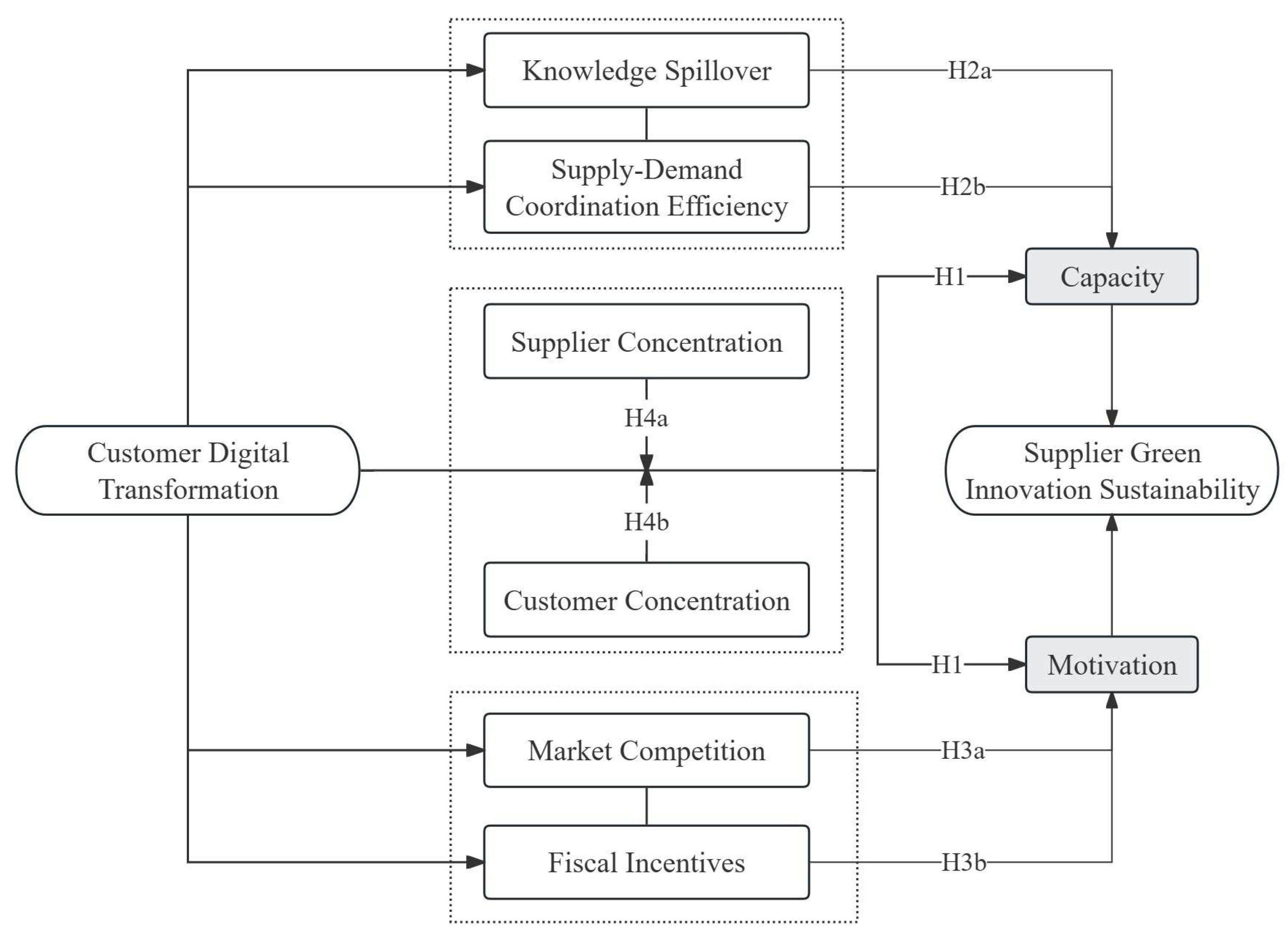 By constructing a dual-pathway analytical framework, this study deconstructs the sustainability of green innovation into two dimensions, sustaining capability and sustaining motivation, identifying differentiated transmission mechanisms and offering a new analytical perspective for conceptual investigations of the dynamic evolution of innovation. Moving beyond the traditional single-firm analytical paradigm, this research centers on the spillover effects of downstream digitalization on upstream entities. It reveals the intrinsic logic of cross-firm green innovation coordination within supply chains, providing fresh empirical evidence for interdisciplinary research where supply chain management intersects with sustainability. Furthermore, by analyzing the differentiated moderating role of the supplier and customer concentration, it elucidates how supply chain structural characteristics influence the spillover efficiency of digital transformation, broadening research into the contextual mechanisms of interorganizational relationships in shaping innovation effects.
