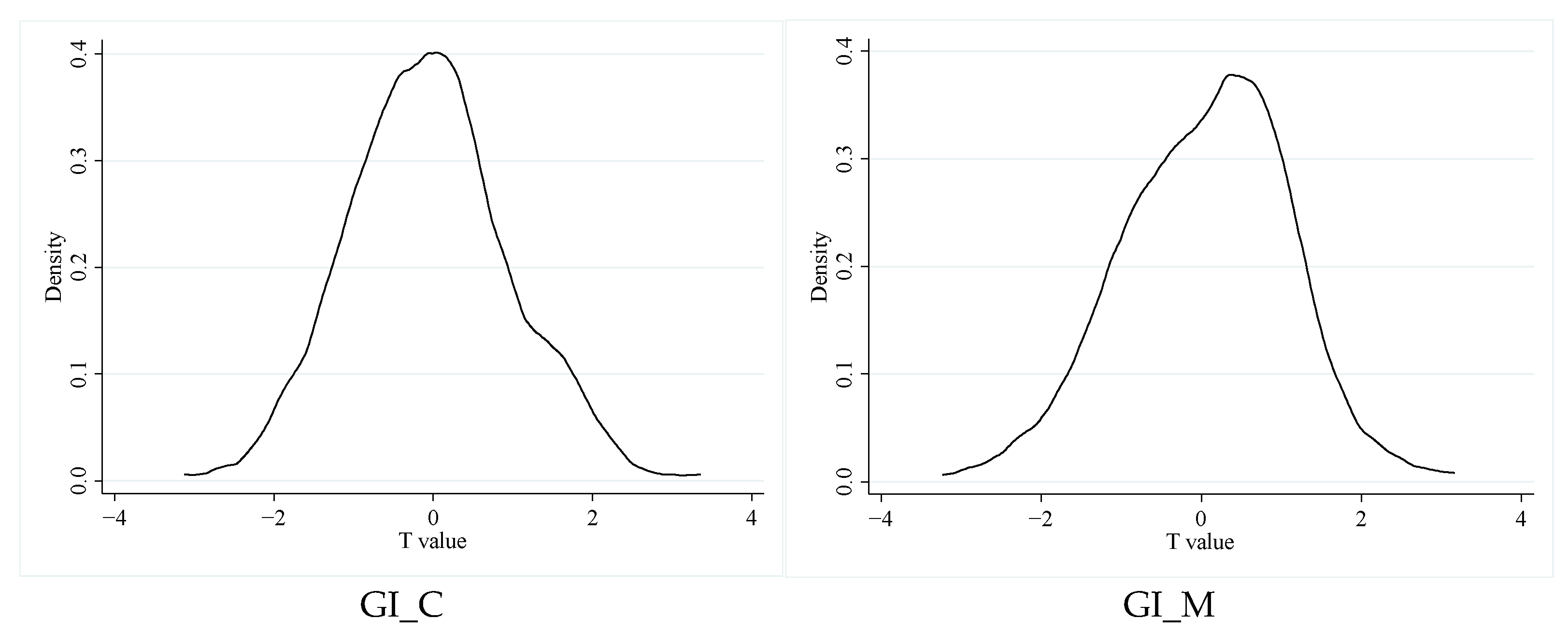 Table 5, the second-stage IV regression results—controlling for both the year and firm fixed effects—demonstrate statistically significant positive effects of the instruments on firms’ green innovation sustainability and motivation. These robust findings further validate our core hypothesis.