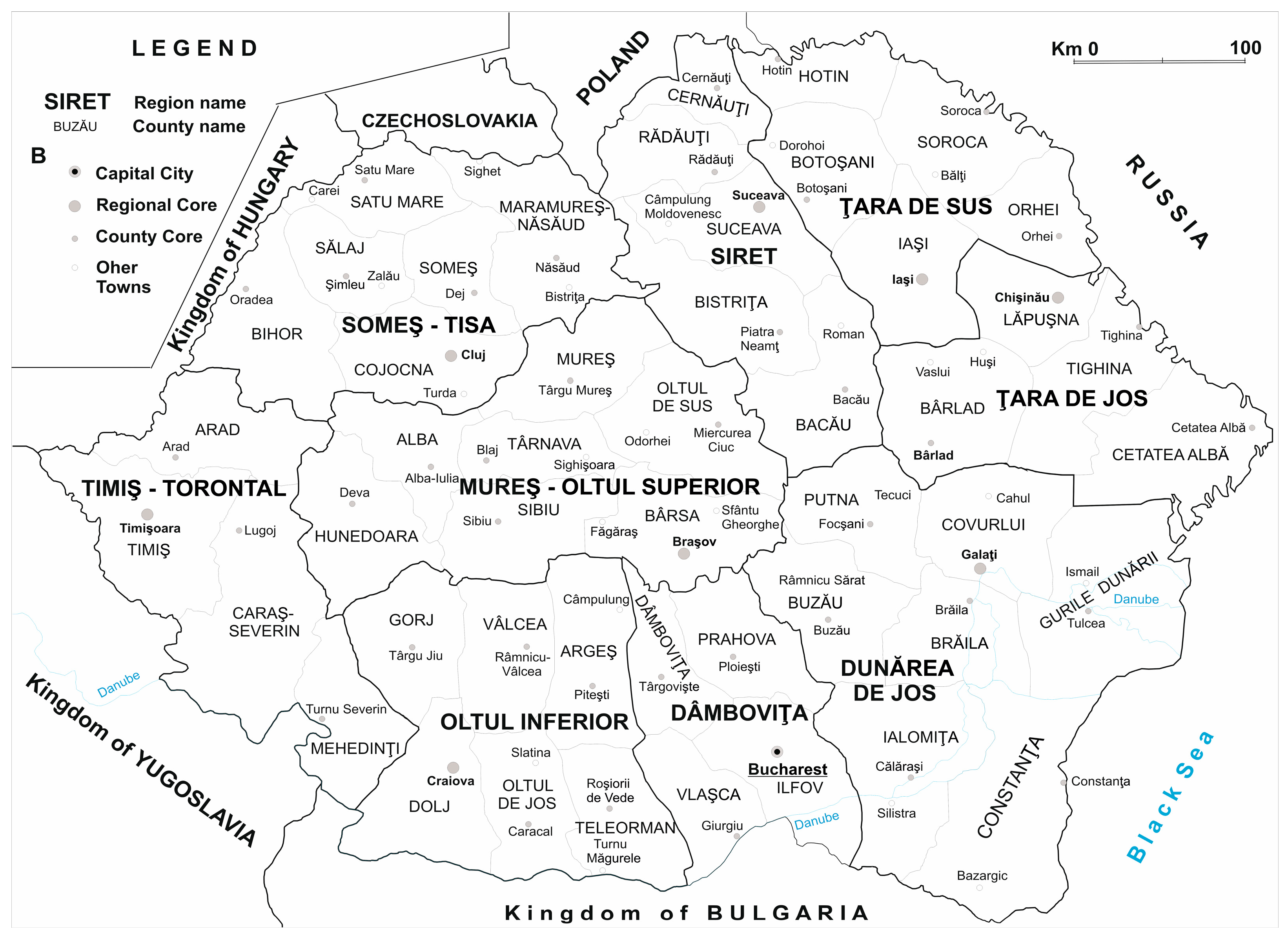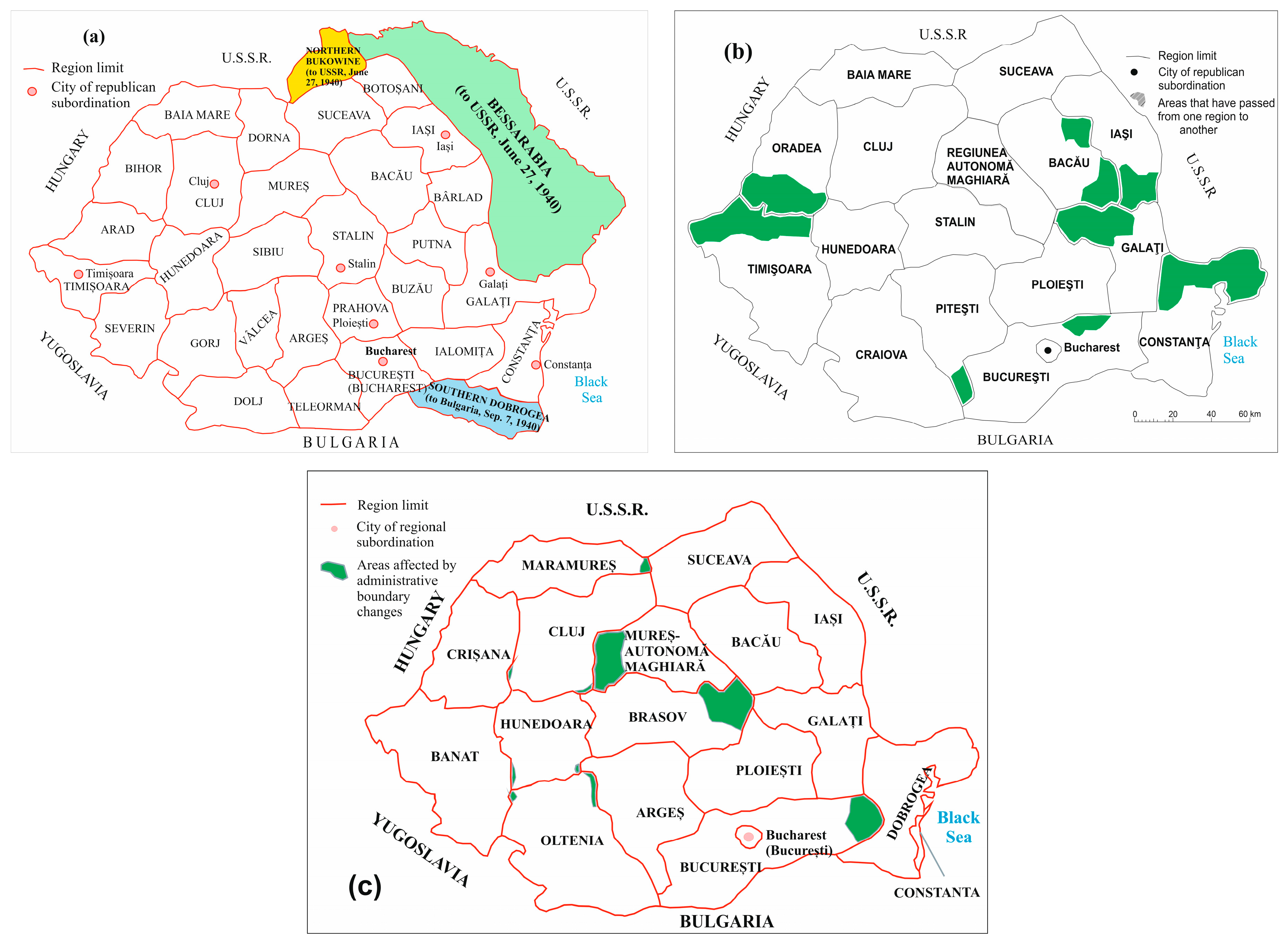 4. Administrative–Territorial Regionalization of Romania in the Geopolitical Context of the Last Century (1925–2025)