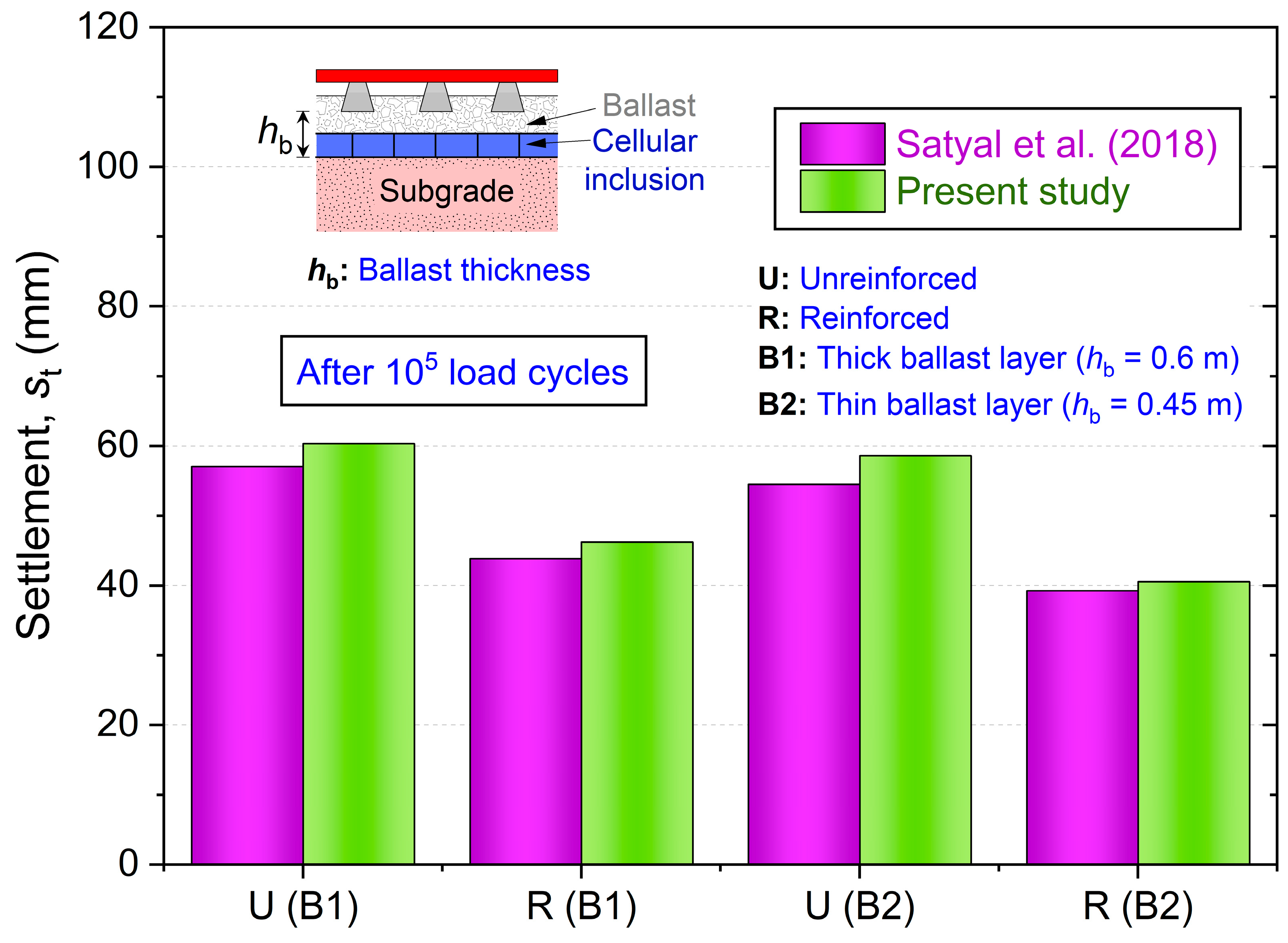 Previous field investigations have also demonstrated the effectiveness of cellular inclusions in railway applications. For instance, these inclusions have been shown to: (a) significantly reduce vertical settlement and lateral deformation in ballasted tracks [