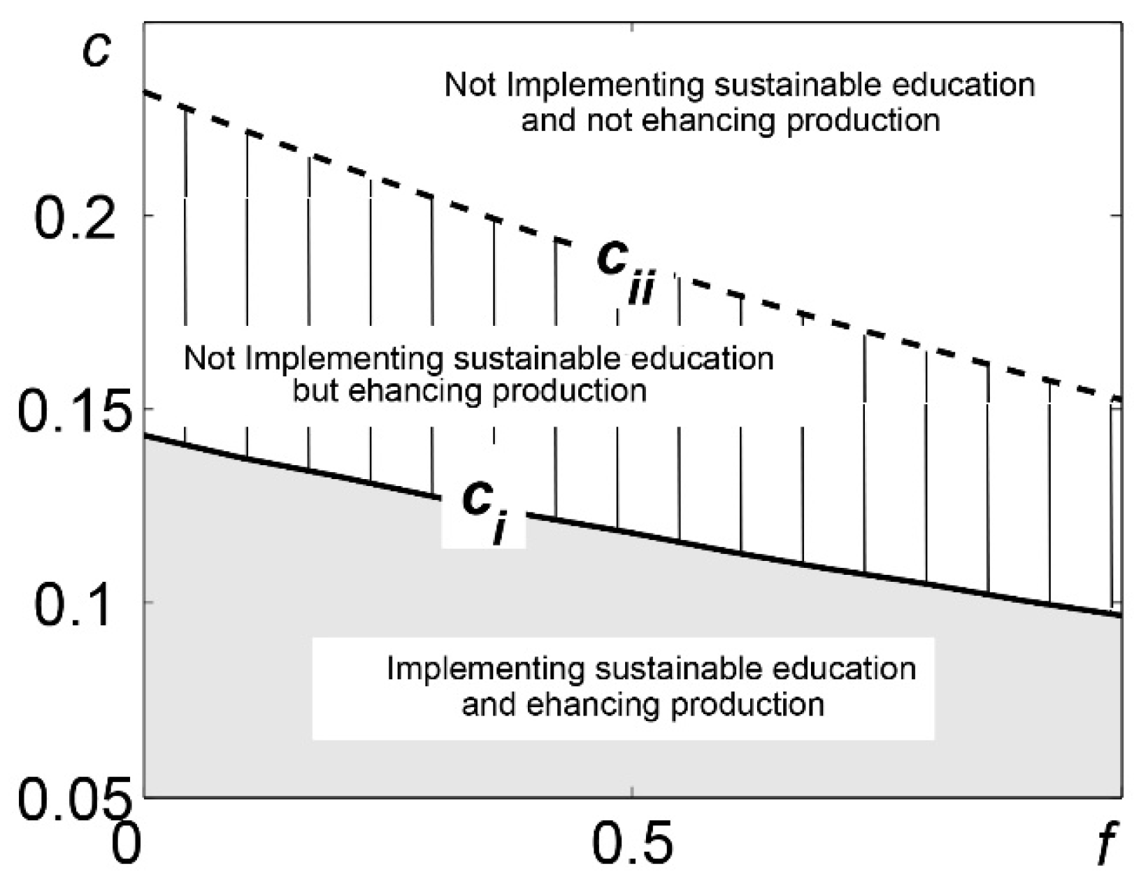 1] found that the degree of green innovation achieved by a manufacturer is determined by its product R&D investment efficiency and spillover, as well as its power relationship with other supply chain actors. Proposition 3 partially validates this conclusion, particularly finding that when the green education cost is not pronounced, i.e.,