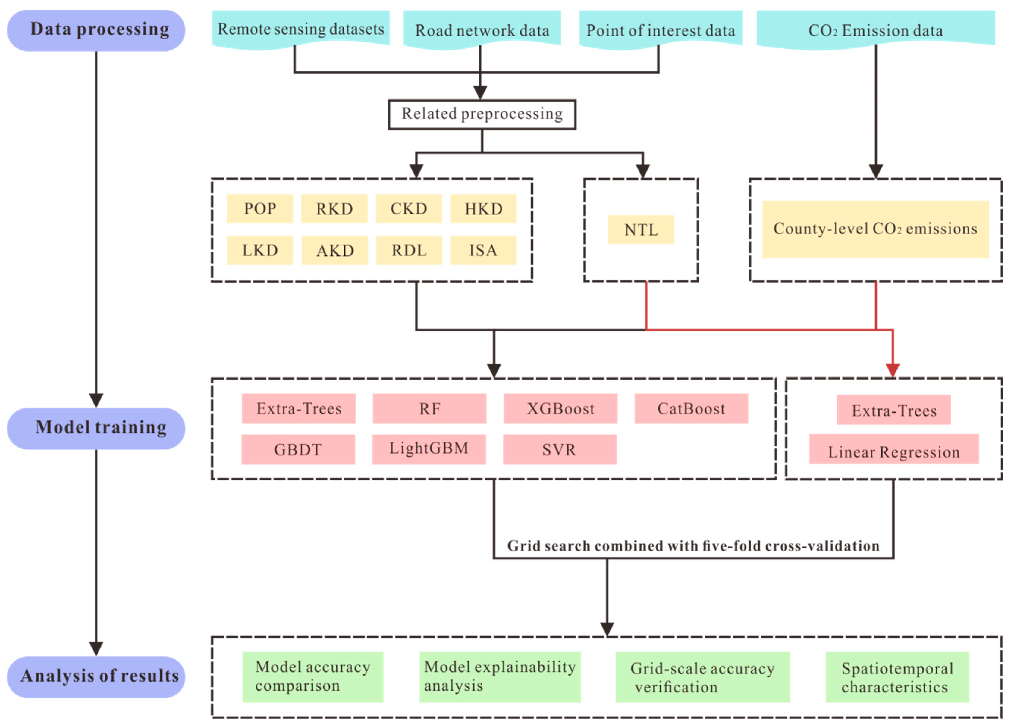 - A spatial estimation model of CO2 fossil fuel emissions was constructed based on multi-source data and machine learning models for mapping high-resolution CO2 fossil fuel emissions.