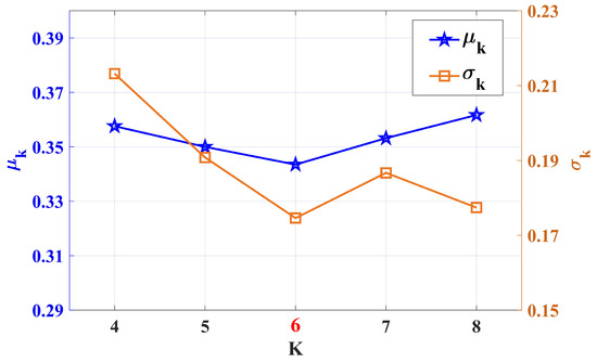 The performance of VMD decomposition is significantly influenced by several parameters, including the number of modes K, the penalty factor , and so on. Among them, the selection of K plays a particularly critical role, as it directly determines the accuracy of multi-scale feature separation. If K is set too small, different frequency components may become entangled; conversely, an excessively large K may introduce spurious modes, thereby compromising the stability and interpretability of the results.