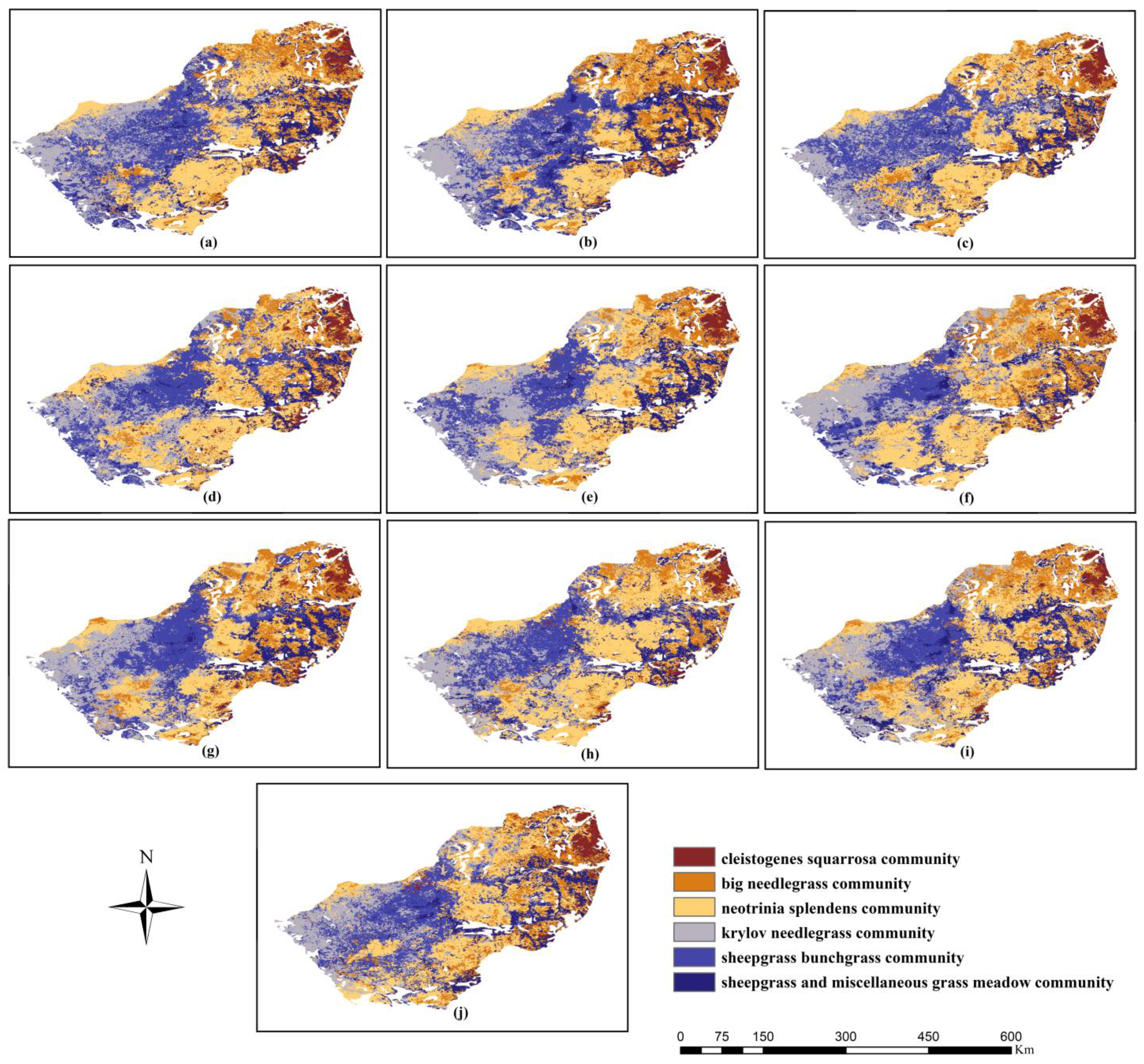 - Zhao, R.; Xiao, R.; Wan, H.; Liu, H.; Gao, S.; Liu, S.; Fu, Z.; Tan, C.; Wen, R.; Tang, H. Grassland change monitoring and driving force analysis in Xilingol League. China Environ. Sci. 2017, 37, 4734–4743. [Google Scholar]