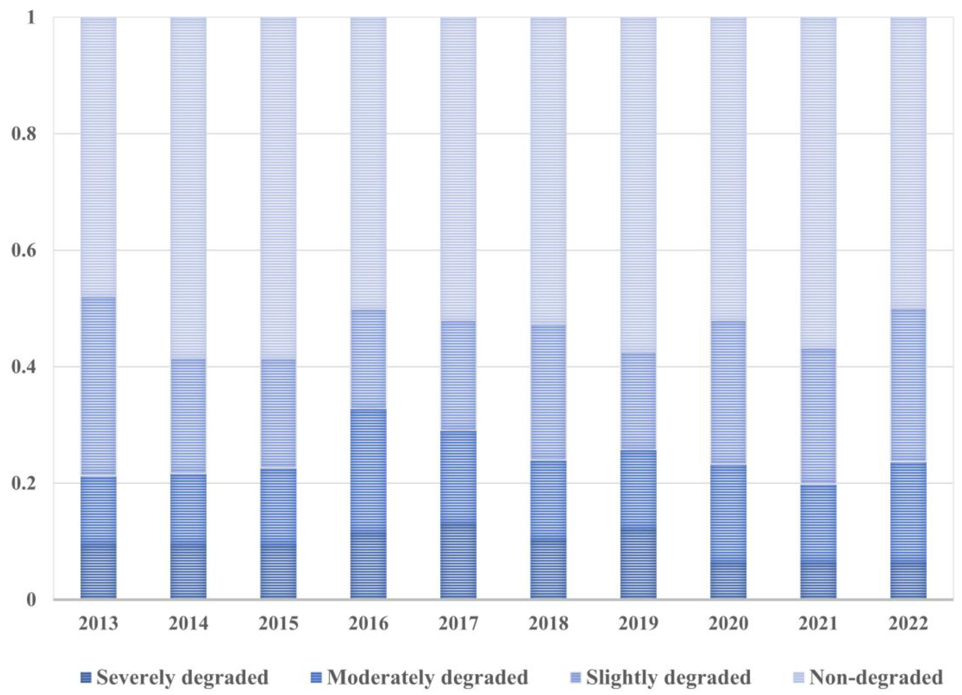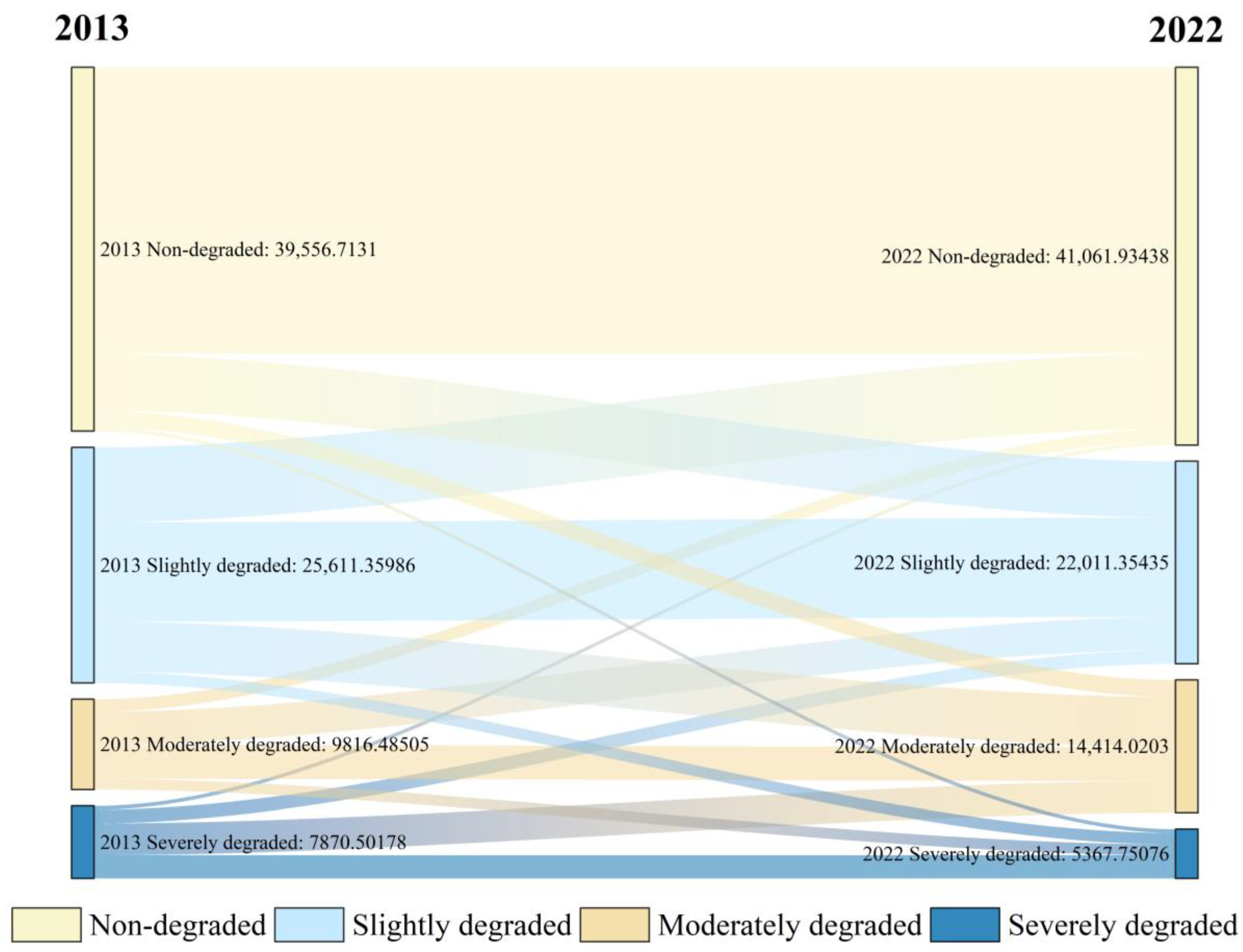 4.1. Characteristics of Spatial and Temporal Changes in the Composite Degradation Index