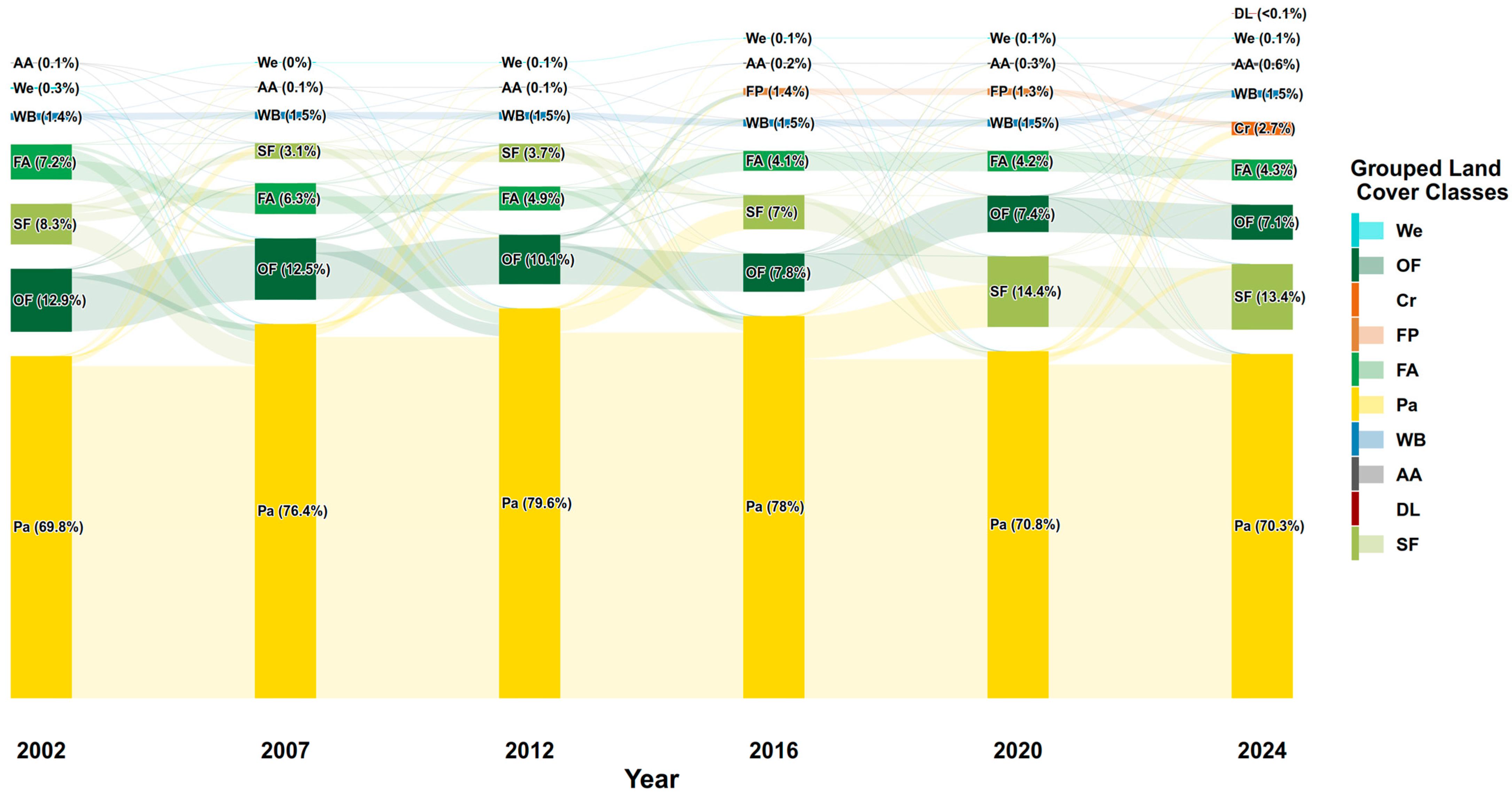 - de Vries, P.; Piet, G.; Jongbloed, R.; Grundlehner, A.; Tamis, J. Ggsankeyfier: Create Sankey and Alluvial Diagrams Using “Ggplot2”; CRAN: Vienna, Austria, 2024. [Google Scholar]